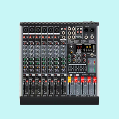 每通道3波段均衡器每声道有1个后置推杆效果输送,外置效果设备主混音混输出端耳机和立体声CD /磁带输出端CD /磁带输入可通到主混音或控制室/耳机输出端用耳机和...